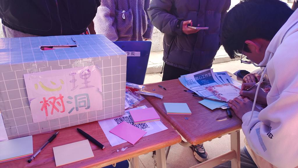 户外咨询区,心理健康指导服务中心老师、西北师范大学心理学专业研究生,为同学们进行了面对面的咨询与交流。经验丰富的心理老师们为大家解答生活、学习中遇到的心理困惑,引导同学们积极调整状态,尽快投入到新学期的学习、生活中。这一活动也鼓励同学们在遇到心理困惑的时候,学会主动求助,引导大家养成良好的心理保健意识。