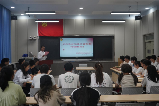 为学习习近平总书记五四青年节重要寄语精神,引导广大青年听党话跟党走,争做有理想、敢担当、能吃苦、肯奋斗的青年先锋,5月28日下午,石油化工学院2023级化学工程与工艺红柳卓越班团支部,在彭家坪校区蔚云楼207教室开展学习习近平总书记五四青年节重要寄语精神示范性主题团日活动,邀请第28届甘肃青年五四奖章集体—兰州空间技术物理研究所空间站建造青年团队共同学习交流。团支部书记张耀杰主持。各学院团支书代表观摩学习。